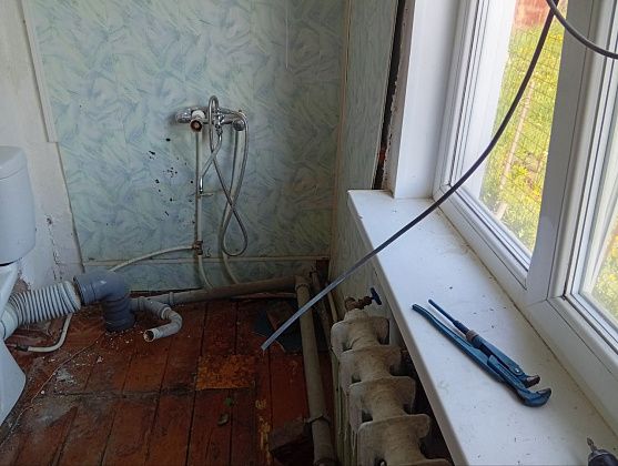В начале июня к нам в гости на три дня приехали сестра с зятем, оба архитекторы - чтобы помочь начать ремонт. Планировали класть кафель на имеющийся деревянный пол. Но зять посоветовал от старых полов избавиться - иначе не факт, что плитка на досках со временем не начнет “гулять”. Вскрыли доски, выяснилось, что они довольно уже гниловатые. А под досками оказались глубокие, сантиметров 90, пустоты, которые в течение целого дня мы дружно, в 8 рук, закладывали всем, что оказалось под рукой - бэушными кирпичами, щебенкой, которую привезли, чтобы отсыпать дорожки в огороде, кусками арматуры, даже старыми металлическими кастрюлями. Верхний слой, сантиметров 30, бетонировали. Только на подготовку полов для укладки кафеля ушло два полных дня, с раннего утра до поздней ночи. После полы пришлось еще залить самовыравнивающейся смесью, чтобы по уровню было.