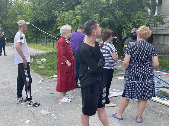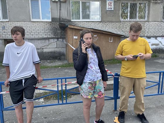 После утреннего происшествия жители первого подъезда вышли на улицу. В основном, все были в домашней одежде. К дому подъехали спецслужбы города. Подъезд огородили сигнальной лентой и жителей внутрь не пускали. За порядком следили сотрудники полиции, работала карета скорой помощи.