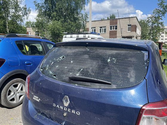В результате происшествия пострадали машины, припаркованные у подъезда. У одной из иномарок разбито стекло и видны царапины на кузове.
